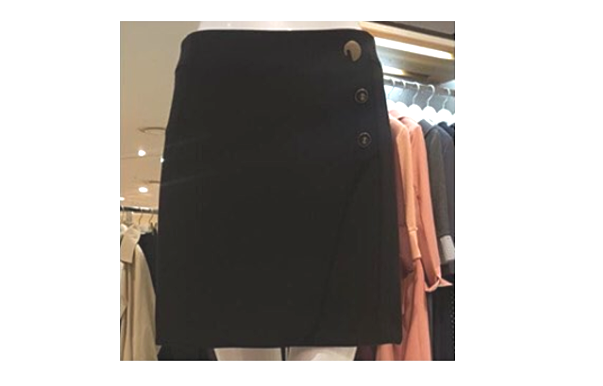 ▼ZOOC 裙子:韓國第一大服飾公司旗下最大的時裝品牌,此款黑色鈕扣窄裙韓幣定價 179,000 元,約台幣 4,780 元。