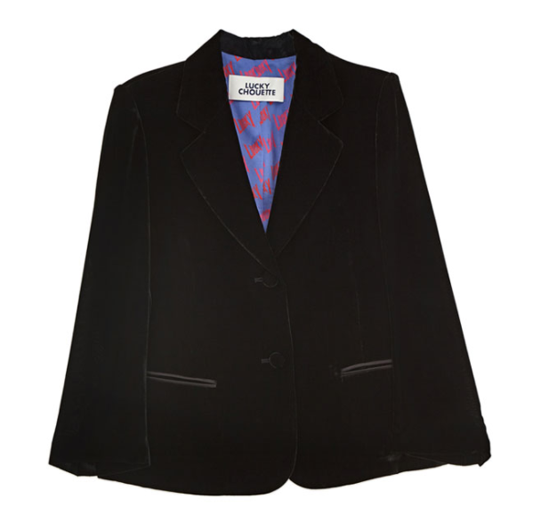 ▼ Lucky Chouette 外套,韓國當紅潮牌,是很多韓劇和明星常穿搭的品牌之一。此款黑色絲絨外套定價 498,000 元,約台幣 1 萬 3300元。