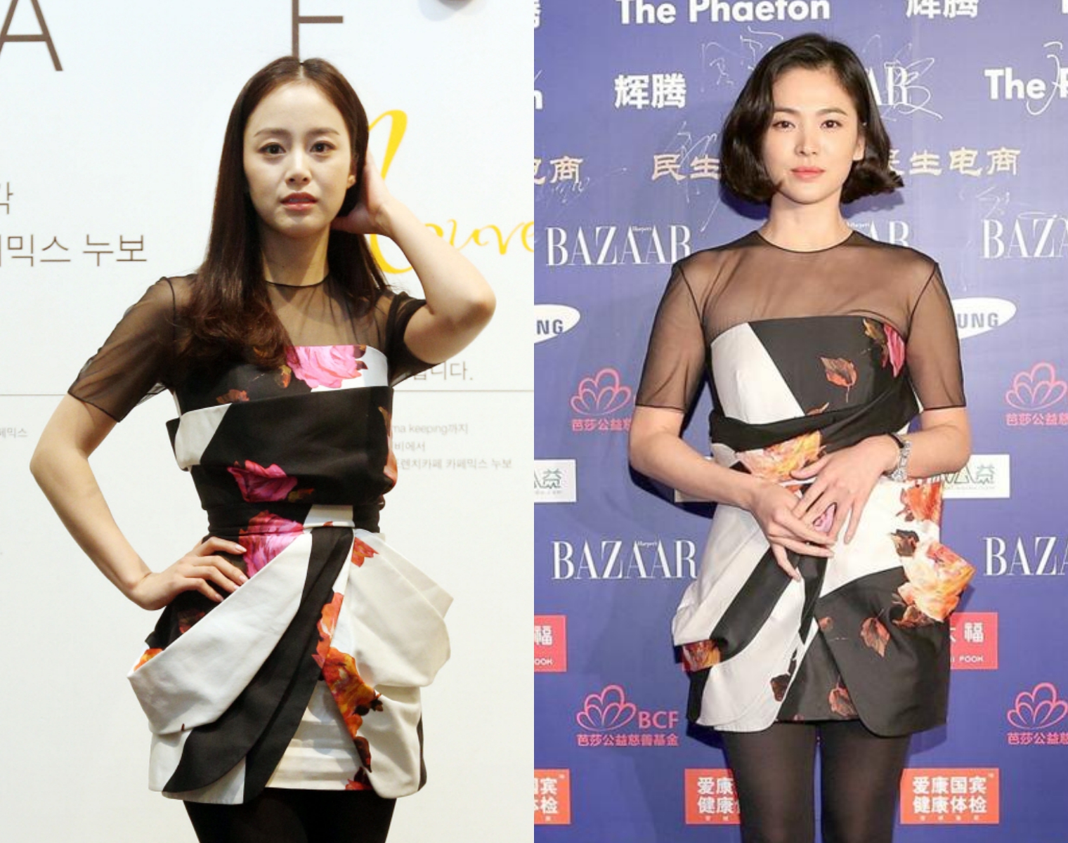 2013 年金泰熙出席咖啡飲品代言活動,穿一席 Blumarine 黑白相間的玫瑰印花洋裝,與同年宋慧喬出席「芭莎明星慈善晚宴」的造型撞衫!是說兩位真的覺得這小禮服好看嗎?編輯有相當大的疑惑,剪裁與印花都非常普通,還是這就是當年韓國所流行的趨勢呢!?