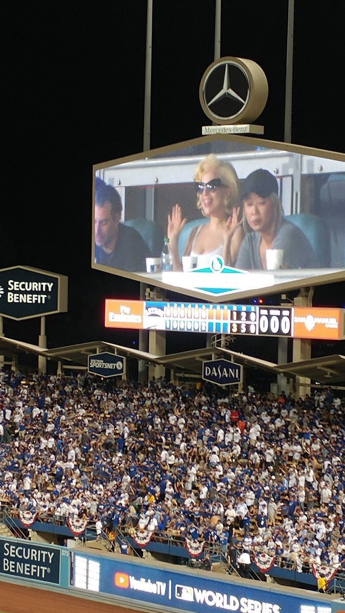 ▼在爆滿的道奇體育場中,現場大螢幕還特別給了女神卡卡鏡頭。