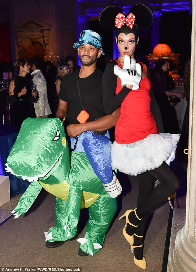 ▼另一名超模祖安·史摩(Joan Smalls)則是化身米妮,還有可愛的大手套,這樣喝酒好像比較困難點...