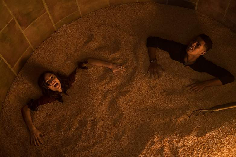 ▼《奪魂鋸 8:遊戲重啟》中參與遊戲的倒楣者被困在埋滿沙礫的井中,之後恐怖的鋒利刀鋸就從天而降,讓人無處可閃,只能眼睜睜看著自己被劈成肉塊。