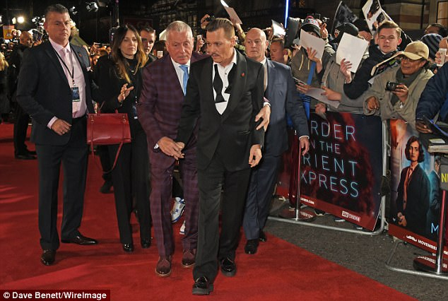 ▼不過當強尼戴普出現在《東方快車謀殺案》的首映會紅毯上時,卻被國外媒體指出「所有人都認為他已經喝到醉了」,當強尼戴普搖搖晃晃現身紅毯上時,他的長期任職且親密的私人保鑣 Jerry Judge 緊張到全程都抓著強尼戴普的雙臂,避免他失態。