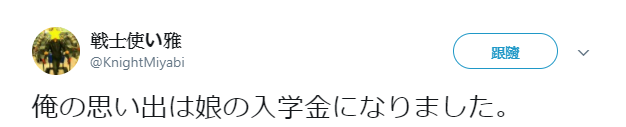 日本一名遊戲王卡玩家 @KnightMiyabi 從少年玩到成為人父,現在已經成為一個女兒的爸爸的他,為了籌小孩的教育費,在推特上公開賣出自己長年收藏的 4 張正版青眼白龍遊戲王卡,他忍不住感慨的寫下:「我的回憶變成了女兒的入學費了。」