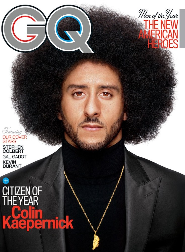 ▼只見在這組封面照中,其他入圍者為非裔、白人混血的足球員四分衛卡佩尼克 ( Colin Kaepernick ) ,在美國總統川普 ( Donald Trump ) 曾默認支持「白人至上」理論,因此當 8 月份和綠灣包裝工隊舉行球賽時,在賽前演唱國歌並未下跪演唱,甚至不惜賠上球員生涯,以行動捍衛種族歧視。