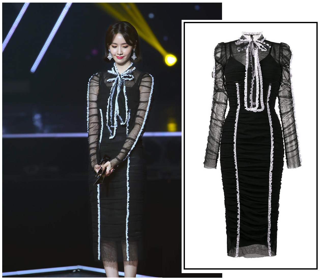 ▼昨天從走紅毯到頒獎典禮,在主辦單位的安排下,潤娥跟李昇基並沒有任何互動交集,但是如果仔細觀察兩人的服裝,設計風格卻如出一轍。潤娥一襲黑色雪紡合身長洋裝,中間以白色滾邊花紋凸顯出優雅美麗的氛圍,並且領口飾以蝴蝶結增加貴族氣質。