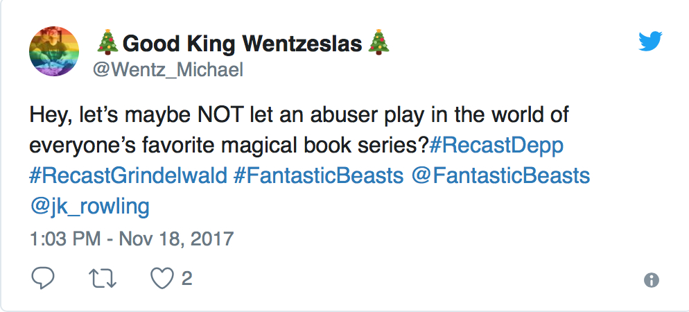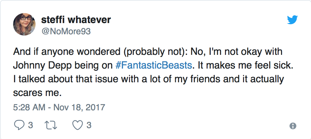 ▼在《怪獸》官方推特曝光最新消息以來,許多影迷們紛紛以留言、分享方式回覆:「對《怪獸》仍選強尼戴普加入相當失望!」、「完全無法容忍強尼戴普現身《怪獸2》,這讓我感到噁心!」以及「可以不要讓施暴者演出全球最受歡迎的魔法系列嗎?」