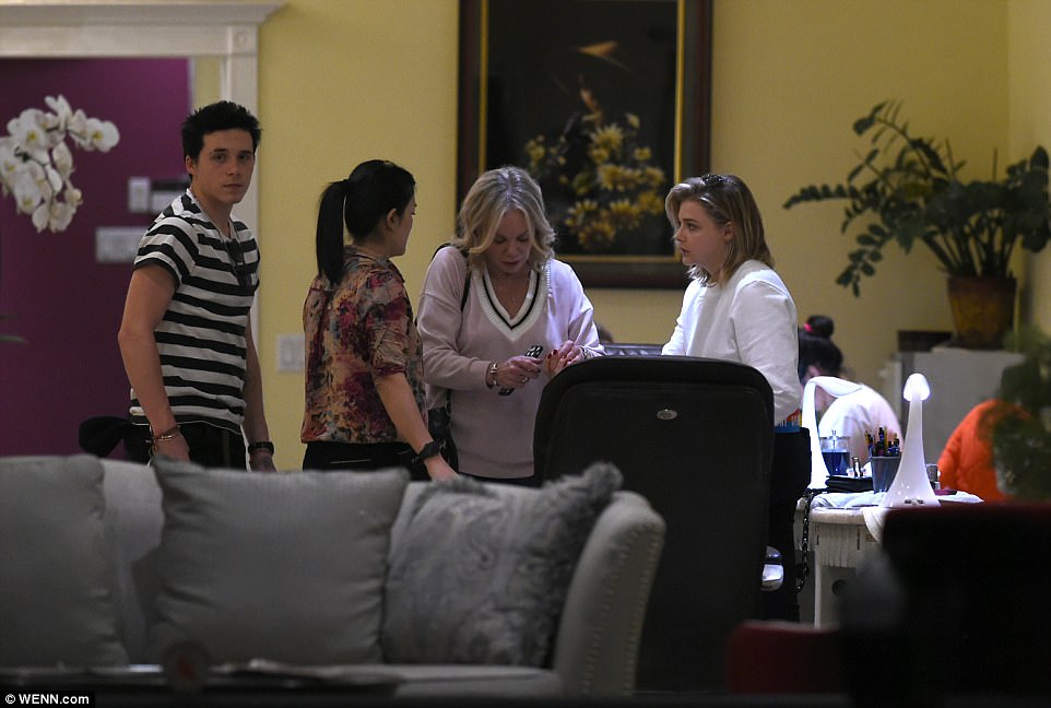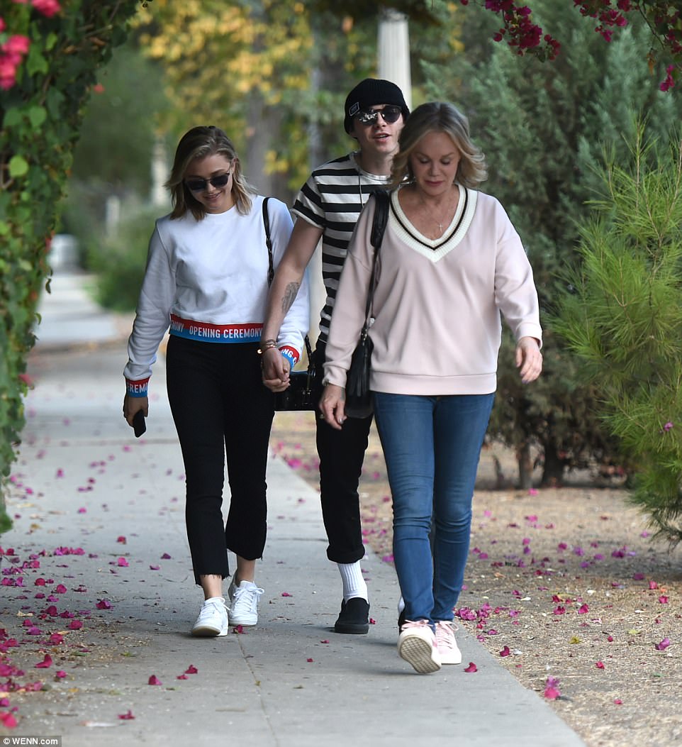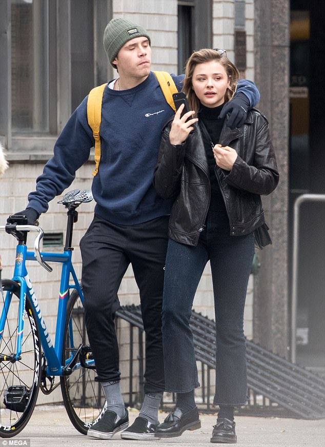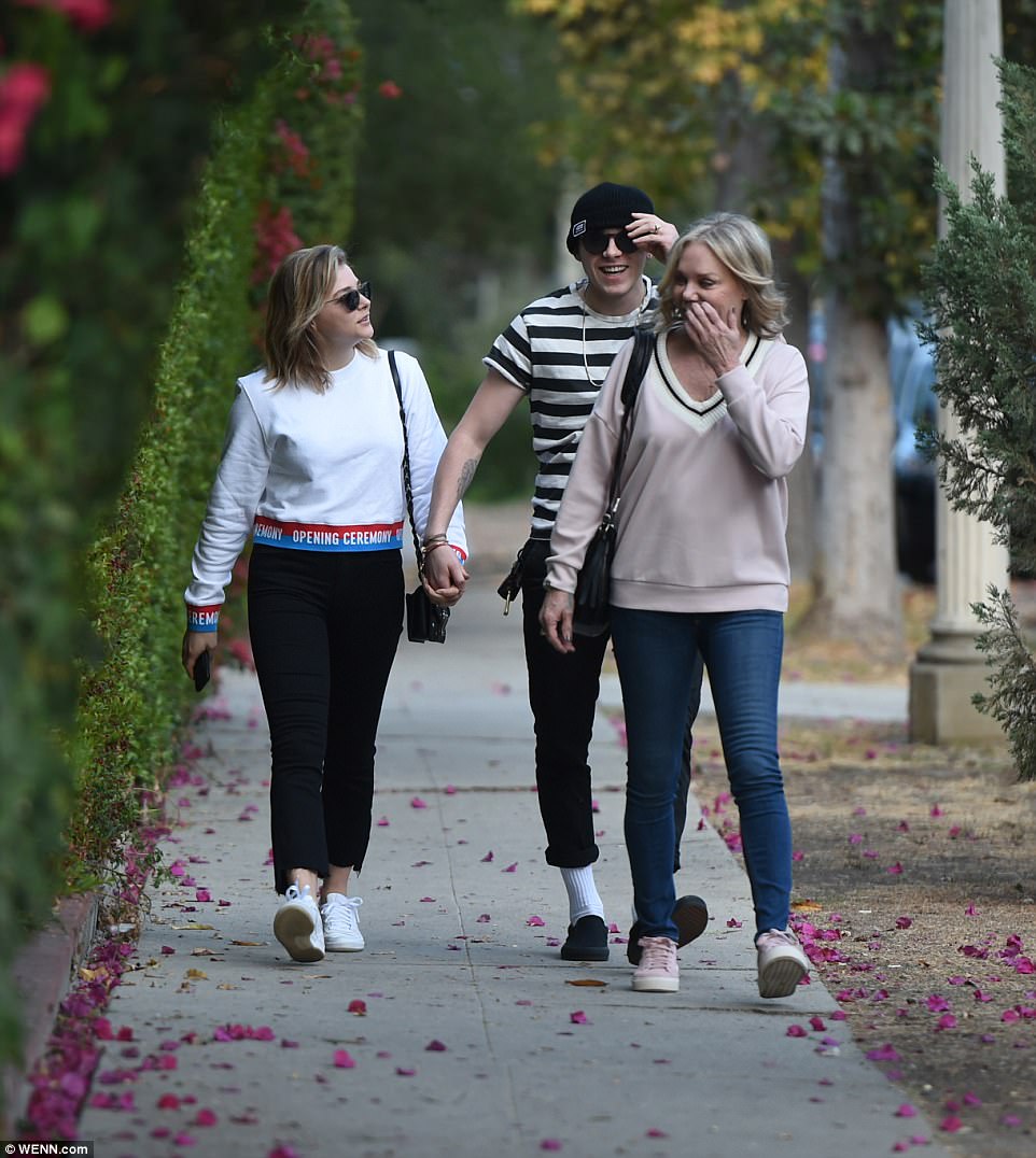 因此克蘿伊和布魯克林這一次的復合交往也看起來格外認真,克蘿伊不僅在前陣子進一步開始著用布魯克林媽媽維多利亞的設計品牌衣服,準媳婦直接成為代言人。現在布魯克林也進一步「見岳母」,他在上周末被狗仔直擊在洛杉磯手牽著女友克蘿伊,前頭走著克蘿伊的媽媽 Teri Duke Moretz,這一對小情侶開始進行家長認可的同行約會。