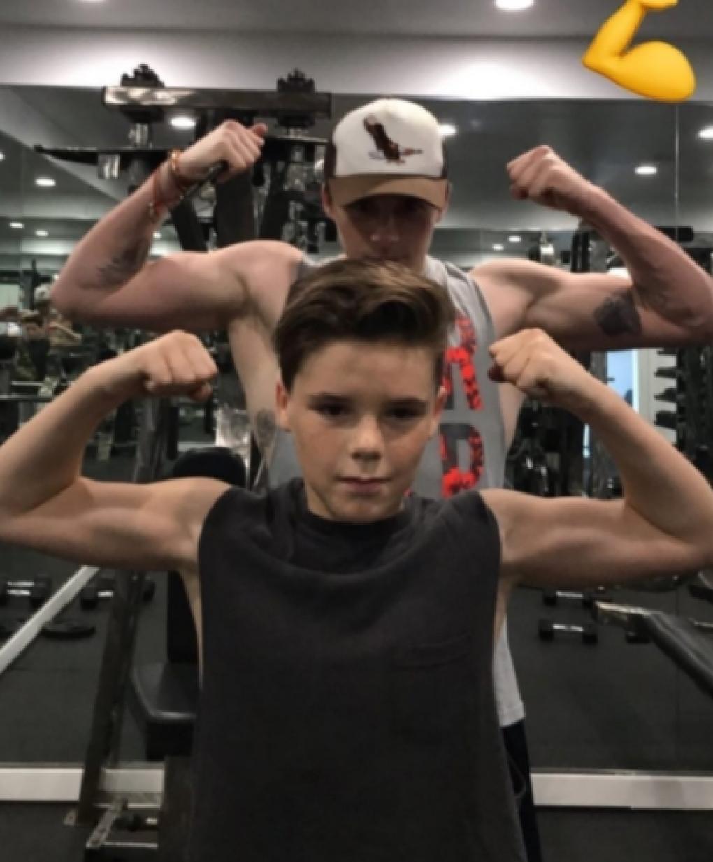 ▼布魯克林前陣子還帶著克魯茲上健身房,兩人一起使用健身器材,立志成為向職業足球員爸爸看齊的健壯男孩。