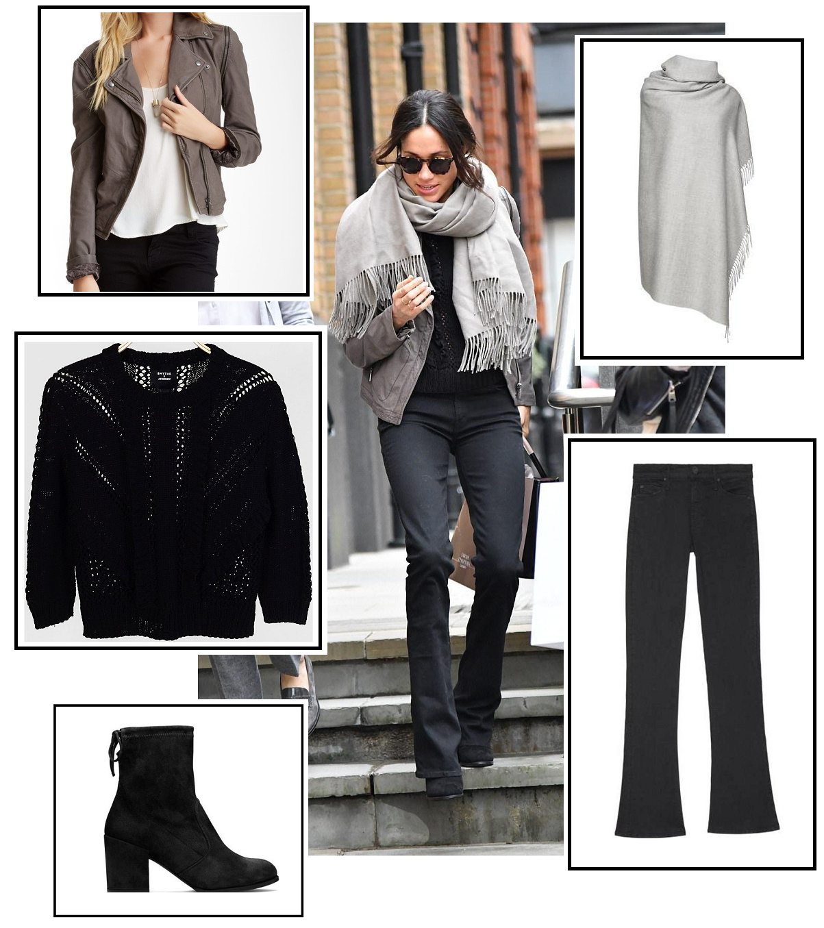 ▼當天梅根穿著的單品中很多也是凱特王妃的愛牌,兩人關係應該很融洽:SMYTHE上衣,LINE 外套,Sentaler 披肩,Mother 褲子,Stuart Weitzman 靴子。