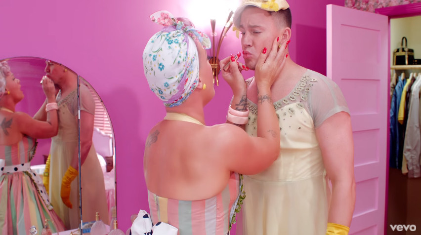 在這段飛簷走壁、令人驚豔的演出之後,新歌〈Beautiful Trauma〉也隨即上架,今回請來舞技不容小覷的的 Channing Tatum(查寧塔圖)跨刀演出,整支 MV 充斥復古卻又鮮豔俏皮的氛圍,飾演 60 年代夫妻檔的他們,除了演繹完美甜蜜生活之外,更有 Channing Tatum 男扮女裝的戲碼,以及毫無忌諱大玩 SM 情節,讓粉絲看了是相當過癮!
