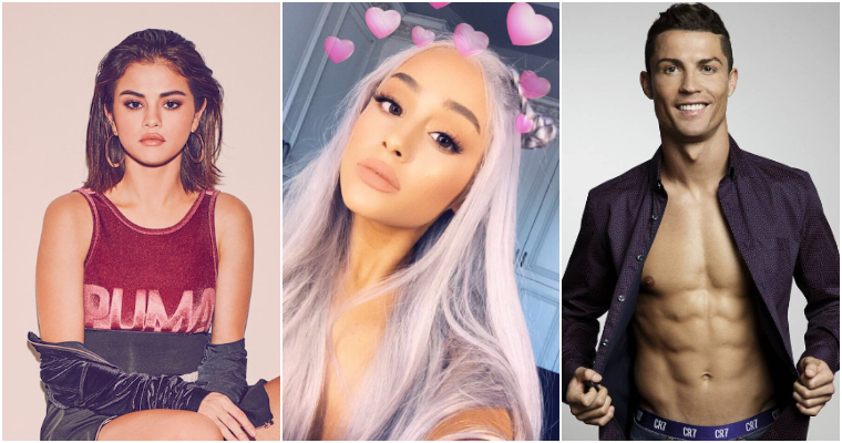 不過賽琳娜仍然擁有全球最高的粉絲追蹤人數,而列居粉絲追蹤數次高的又是由 C 羅奪下、第三名則為小天后亞莉安娜,除了今年復出歌壇的泰勒斯、重拾舊情的小賈斯汀 ( Justin Bieber ) ,今年除了《玩命關頭8》( The Fate of the Furious 8 ) 以外更接下不少好萊塢大片的巨石強森 ( Dwayne Johnson ) 列居榜上以外,在 Top 10 裡的其餘名額則是由「卡達夏家族」全包辦。