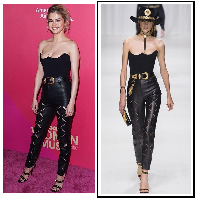 ▼ 賽琳娜昨天穿著的單品從上衣到鞋子都來自於以美豔性感著稱的品牌: VERSACE (凡賽斯)。