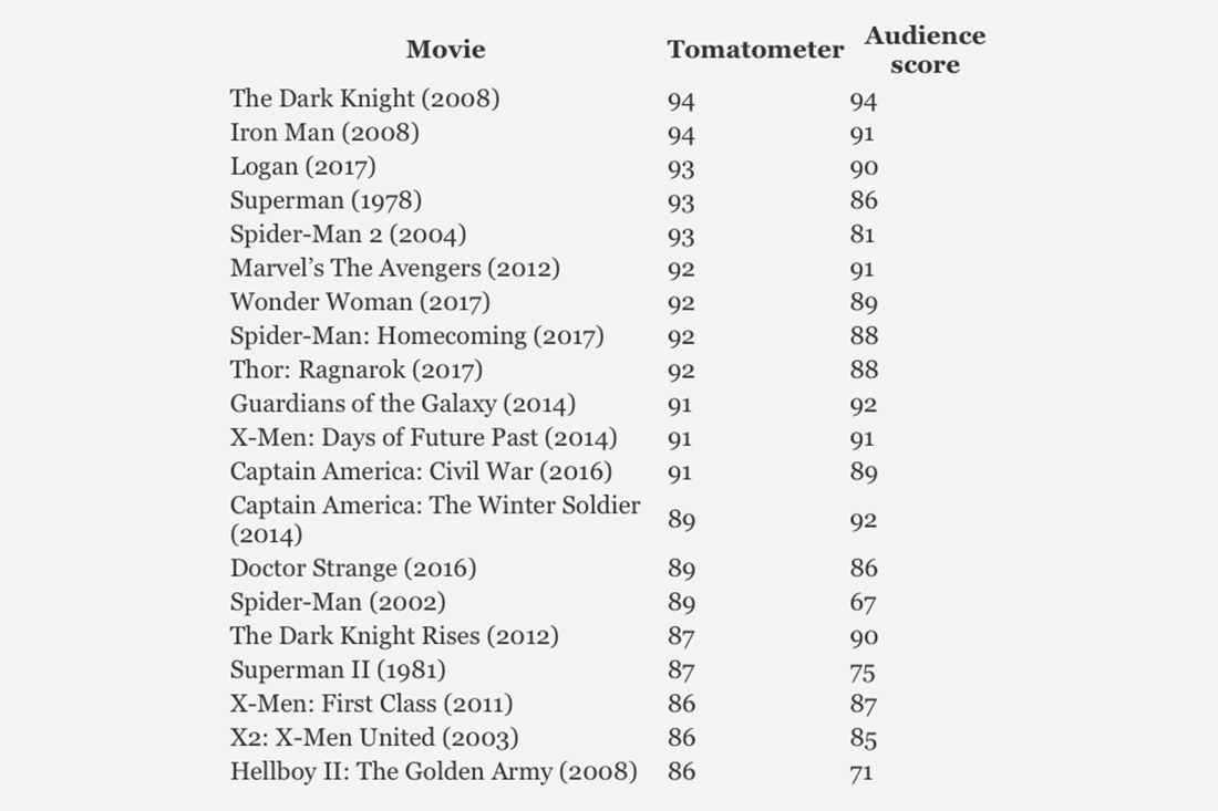 漫威 DC 英雄電影大對決,爛番茄指數第一名的是這部神作!