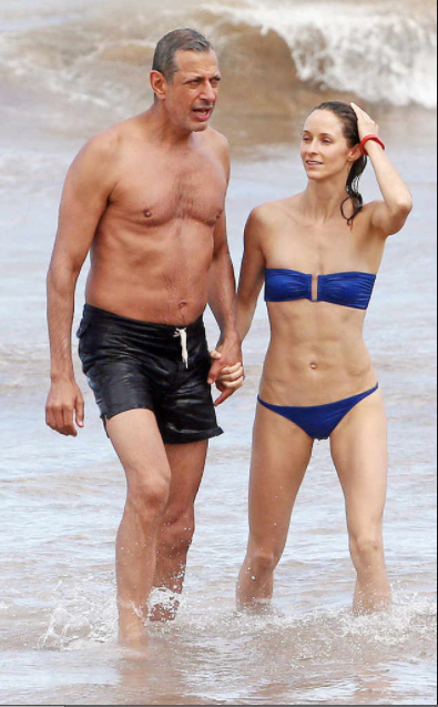▼1952 年出生的傑夫·高布倫,與 34 歲的運動員妻子去海灘戲水,也可以看出他的身材在同齡人當中能說是保養得相當得宜的男性。