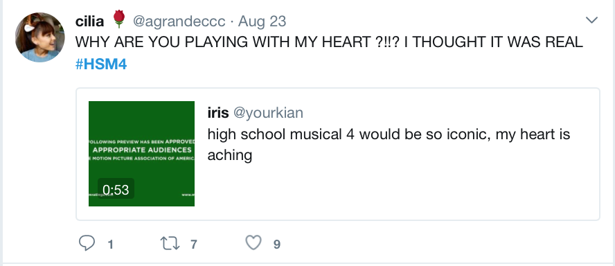 編輯自己看完發現這支影片是由粉絲們製作的瞬間,心情也是一下由喜轉悲,畢竟《歌舞青春》不只是一部電影,還是大家的青春回憶啊,真的希望不要再有厲害的粉絲亂製作電影預告了,大家的玻璃心是很脆弱的!