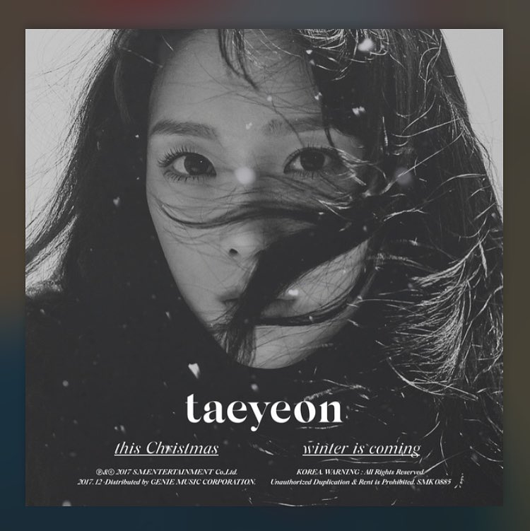 28 歲的韓國人氣女團少女時代隊長太妍(TaeYeon),人美歌甜,今年榮獲由全球 139 個國家和地區的粉絲票選出的第 12屆 Annual Soompi Awards 「最佳女 Solo 歌手獎」,並且在 12 月 13 日發行首張冬季特別專輯《This Christmas – Winter is Coming》陪粉絲們過聖誕節。