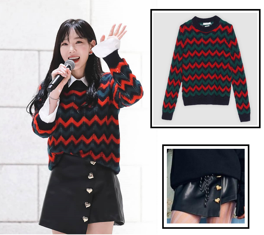 ▼昨天太妍有著聖誕氣息的時髦單品分別為: Sandro Paris 毛衣, VVV 皮裙。