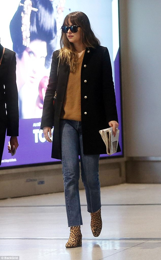 一向被認為是時尚女星的達珂塔·強生,這一天穿著 Gucci Single-breasted wool 長大衣,以直筒牛窄褲搭配豹紋跟鞋,讓雙腿看起來又細又長,而克里斯馬汀雖然以低調的灰黑色系為主,但腳上依然踩著標誌性的鮮豔球鞋。
