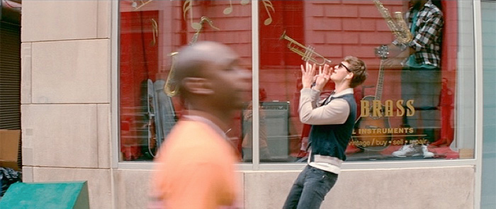 這部喜劇犯罪電影,藉由主角 Baby 對音樂的喜愛,處處展現了電影鏡頭、人物移動與音樂節奏的巧妙結合,光是下面這一幕的男主角在買咖啡的路途上的舞蹈,就值得觀眾再回味一次所有電影安排的巧思。