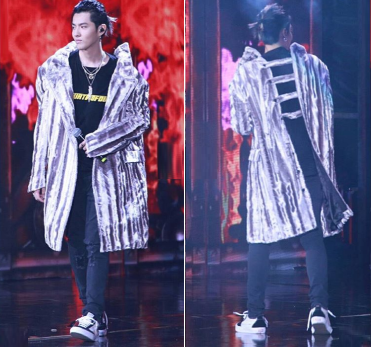 ▼吳亦凡演唱會上一襲前衛反叛銀色皮草大衣,搭配黑色T恤和球鞋的嘻哈穿著上陣,連唱英文單曲《Juice》和《Deserve》並加入autotune 效果,燥翻全場。