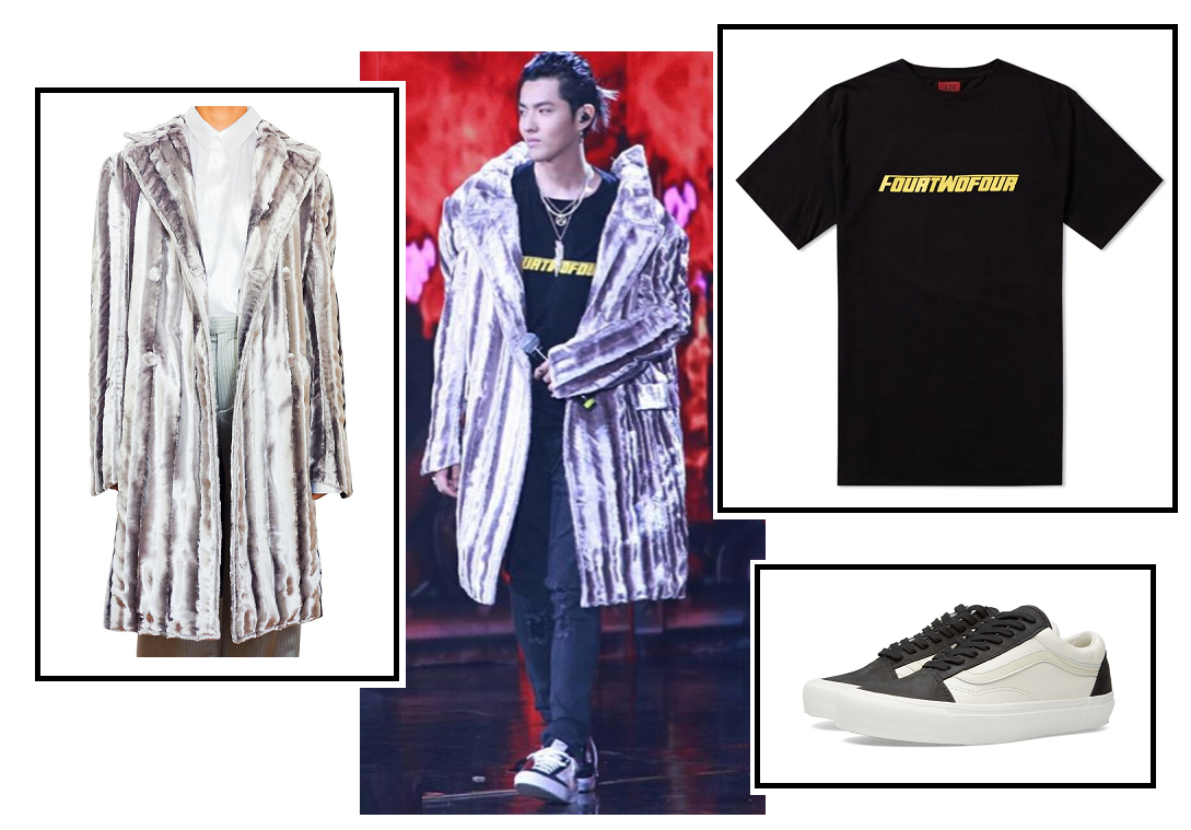 ▼當天吳亦凡穿著的單品分別為: Y/Project 銀色大衣,424 on Fairfax 上衣,VANS 鞋子。