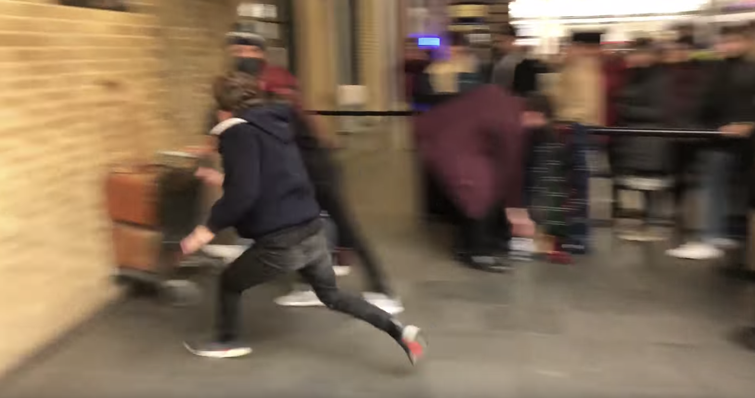 《哈利波特》(Harry Potter)系列電影當中,有許多取自真實的場景,其中英國的國王十字車站(King's Cross Railway Station)就是《哈利波特》當中的 9 又 3/4 月台(Platform9 3/4),這裡也是觀光客必拍景點之一,就有一名男子在許多觀光客眾目睽睽之下,快速衝進 9 又 3/4 月台場景,嚇壞了大家,趕緊來看看這段影片。
