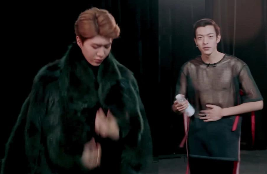 看來范丞丞覬覦這件大衣已經很久了。穿上貂之後,范丞丞自我感覺良好,但是可苦了一旁的卜凡!因為卜凡裡面只穿了一件漁網衫,作為內搭,這件漁網十分性感,但是單穿的話畫風十分奇特,整體感覺十分蕭瑟。尤其是在這冬天,卜凡這身漁網簡直有種瑟瑟發抖的即視感,忍不住都想要幫他打馬賽克。