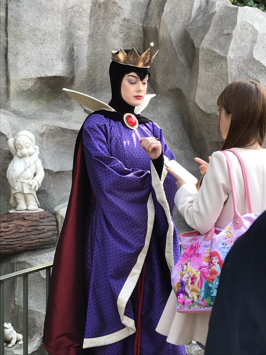 迪士尼主題樂園,是不論大人、小孩一生都必去的夢想童話之地,不管你是就近前往東京或是香港、上海的迪士尼樂園,或者是遠赴到美國本土的迪士尼園區,世界各地的迪士尼樂園都以擁有完全融入角色的優質工作人員服務聞名,不過每一次你前往迪士尼,都只是在排隊與米奇、米妮和高飛合照嗎?近期在日本網友之間颳起旋風的角色,居然是《白雪公主》動畫當中的邪惡反派毒蘋果壞皇后!