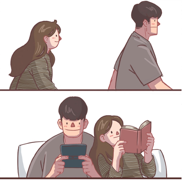 「男朋友說要吃一口,不能夠真的咬這麼大口啦!」如果你還想欣賞更多 Kyu-Young Lee 的情侶繪畫作品,可以透過下面造訪他的 Instagram 專頁,肯定會看見許多令你相當有共鳴的情侶日常互動,「男朋友說要吃一口,不能夠真的咬這麼大口啦!」