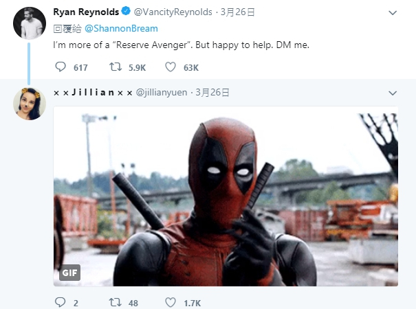 ▼同時在第一時間,飾演「死侍」的演員萊恩雷諾斯也熱心留言:「雖然我更像是復仇者的替補人員,但我也熱意幫忙,請聯絡我。」引發許多網友狂讚。