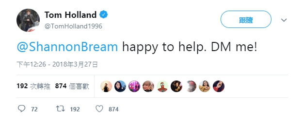 ▼香農·布萊姆發出推特表示:「需要大家的幫忙,我想要幫助一位年輕正面臨死亡的男孩,他可能只剩下幾天的日子了,但他非常想要艦復仇者當中的其中一位超級英雄,如果任何人有這些名人的聯絡方式,請讓我知道,同時大家可以幫我廣傳轉發嗎?先謝謝大家!」