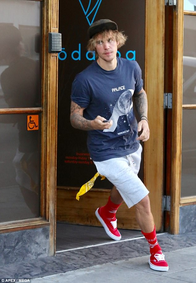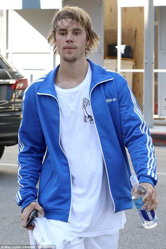 原來在這周小賈斯汀現身於洛杉磯街道,剛前往健身房運動完的他頂著一頭濕透的頭髮,穿著愛迪達寶藍色的運動外套搭配全白運動裝,雙腳還套上了亮黃色的運動 legging,並穿上了知名的 Yeezy 鞋款。