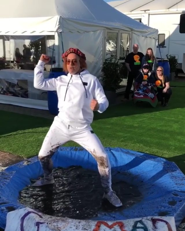 ▼私下為人風趣幽默的小勞勃道尼,現在又錄製了一段自己在泥濘當中穿著全白色運動服舞動的搞笑模樣。原來這是為了關注罕見疾病 ROHHAD 而發起的「泥坑挑戰」(Muddy Puddle Challenge)活動,遊戲規則是在一片泥濘的水坑裡舞動 33 秒,要保證絕對的安全且有趣,然後 Tag #GOMADJUMPFORROHHAD# 並點名 3 位朋友繼續接棒,以吸引更多人關心 ROHHAD 疾病。