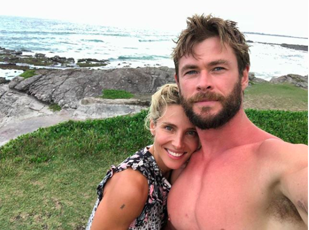 「雷神」夫婦海邊大放閃!41 歲老婆身材太好,克里斯漢斯沃忍不住摸一下...