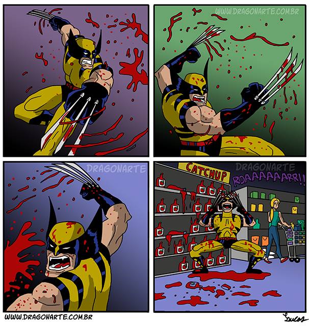 ▼血腥爆裂的金鋼狼,其實只是在賣場割破一罐罐番茄醬的傢伙。