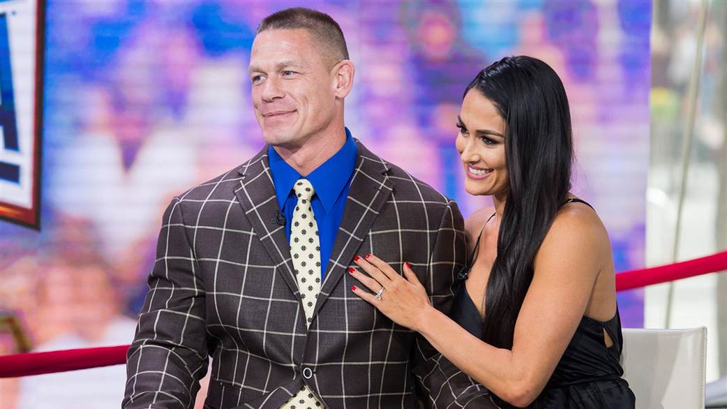 ▼約翰·希南在去年 4 月於 Citrus Bowl 擂台上以前在場 7 萬名觀眾面前,向同是摔角選手的女友妮基貝拉下跪求婚,讓原本凶狠的格鬥場瞬間冒起粉紅色的幸福泡泡,高調的求婚方式令所有粉絲感到羨慕,也紛紛為這一對職業摔角選手情侶檔獻上祝福。