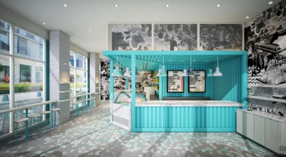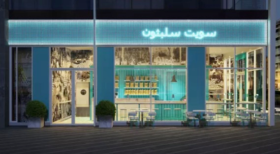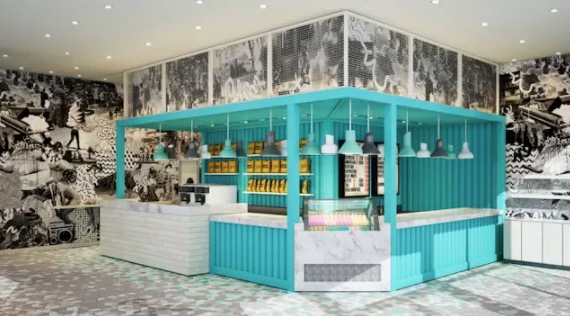 加拿大冰淇淋品牌 Sweet Salvation 去年進駐迪拜,做了一間看起來很華麗的店鋪,操刀設計的是多倫多公司 Navigate Design,新店位於街角,大片玻璃讓視覺和採光都很通透,大面積使用的品牌標誌性藍色相當吸睛,灰色紋理的大理石櫃檯與色彩柔和的菱形地磚,都是為了創造網絡時代拍照時的完美背景。