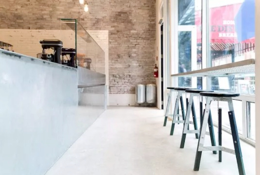 Scott & Scott 在設計空間時兼顧了這棟建築自身的歷史以及冰激凌的製造過程。通過拆除原先租戶的所有裝飾,粗曠的混凝土板地面得以裸露在外,工作區的磚牆在清理過後,也被塗上了厚厚的光澤塗料。