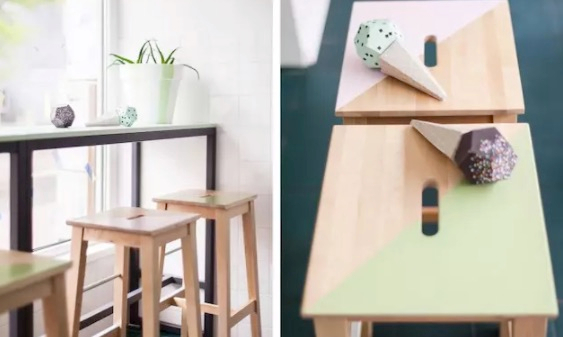 新店由米蘭當地建築實踐團隊 Studio Wok 操刀設計。亞麻油地氈地板、石材和木材的組合定義了整個空間的特色,給人一種現代實驗室的感覺。也是從另一個層面上呼應這裡冰淇淋的特色,不同水果口味的混搭。