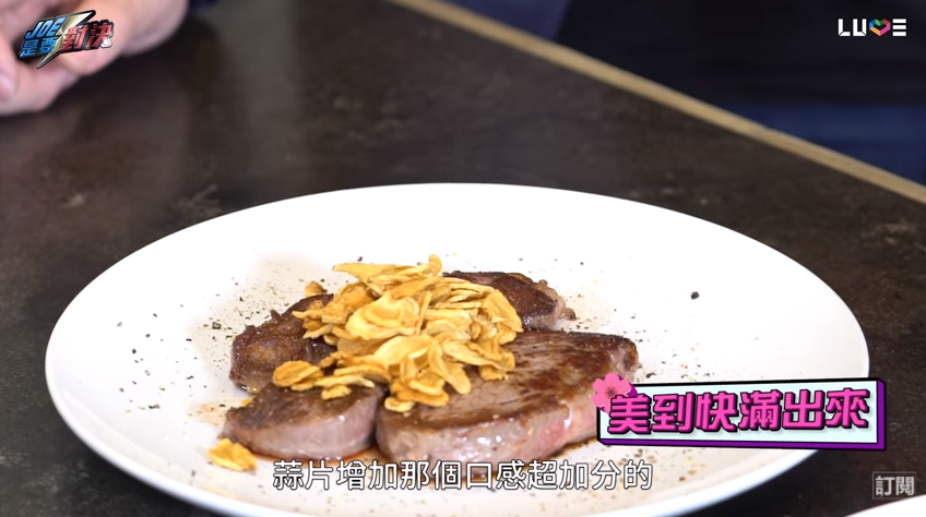 除了下重本買牛肉之外,九妹更超用心請來另一位youtuber廚師明聰來料理,只見影片中牛排一下鍋香味四溢,九妹更說:「我對做節目的熱情都被點燃起來了!」牛排做好之後撒上蒜片看起來超級好吃,小編看得都餓了XD。魚乾吃了之後更是直接大呼:「好吃!」更忍不住為它跳舞,九妹也形容和牛的油花完全在嘴裡四射,聽了都讓人狂流口水!