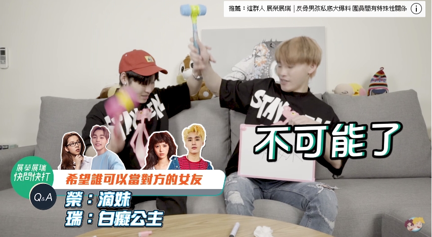 其中,展榮(雙胞胎哥哥)與知名人氣Youtuber白癡公主曾因一張合照引爆討論話題,當時兩人除了親暱的手筆愛心合照,兩人更因此遭網友們腦補為緋聞男女朋友。25日展榮展瑞發布新影片「這群人 展榮展瑞 │兄弟相殘!最寫實 絕不手軟!史上最殘暴快問快打」回應阿滴兄妹的的快問快打挑戰。