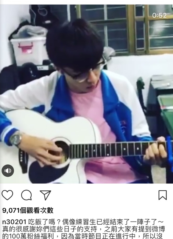 農農透露,這支自彈自唱的影片是他剛學會吉他時所錄製,影片裡他唱著朴樹的平凡之路,細看內容,歌詞意境意外很符合從選秀節目一路走來的心境,也讓不少粉絲聽了直呼:好感動、農農莫忘初衷阿!、你不用在意那麼多人是否喜歡你 你是否做的周全 因為不管你怎麼做都會有人挑刺 ,你啊只要做自己 我們會保護你的 ,那些聲音我們來消滅。