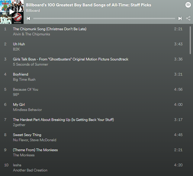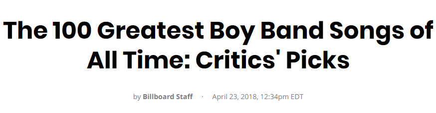 告示牌百大單曲榜(Billboard Hot 100)是由美國的音樂雜誌《告示牌》所製作的一份單曲排行榜,該榜通常簡稱〈告示牌單曲榜〉,此榜單也被認為是美國最具權威的一份單曲排行榜。近日美國告示牌相關人士選出了「The 100 Greatest Boy Band Songs of All Time: Critics' Picks」(100首最棒的男團歌曲),榜單中除了大家所熟悉的The Jackson 5、The Beatles、One Direction、Take That等不計其數的歐美團體的歌,曲目橫跨60年代到現在,不過值得注意的是,其中有高達10首韓國歌曲!
