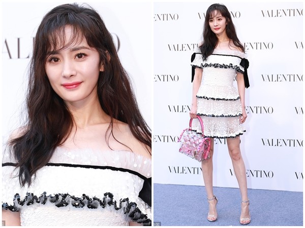 4月26日楊冪身穿一字領白色短洋裝出席品牌活動,貼身的黑色滾邊洋裝讓楊冪的好身材一覽無遺。只見楊冪大秀火辣美腿,大腿根部若隱若現,纖細的腿部線條加上大方露出鎖骨以及雪白香肩,如此保養得宜的她,完全看不出已經是一個孩子的媽媽。