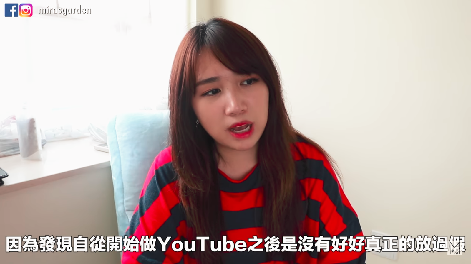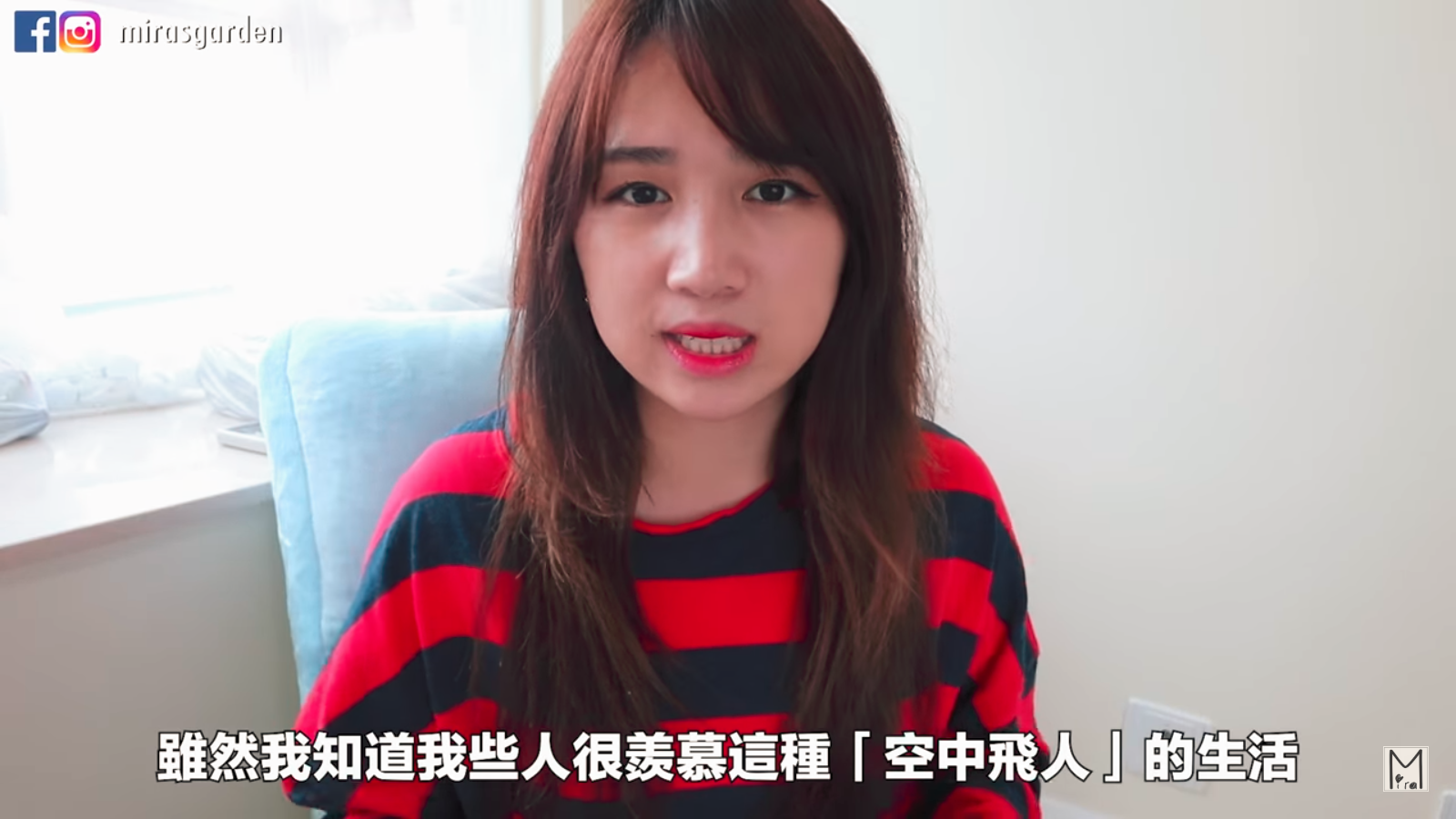 而許多Youtuber的題材靈感都是來自於生活,玩和工作分不開,等於生活中無時無刻幾乎都在工作,長期下來對身心靈累積的疲憊自然也不在話下。知名的香港旅韓Youtuber Mira,最近也在頻道上宣布自己要回香港休息一個月。因為Mira自從開始當Youtuber拍影片,就沒休息過,身體開始有點受不了。而且為了工作,時常需要搭著飛機往返不同國家,Mira提到,雖然可能會有人很羨慕他這種「空中飛人」的生活,但她其實會覺得她飛機很耗時又耗體力,因此最近才會決定讓自己稍微放鬆一下,找回身體的平衡。