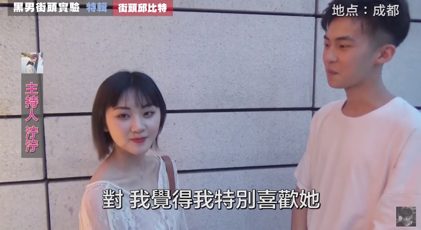 而如今《街頭邱比特》除了在台灣街頭進行配對外,近期也到了中國內地街頭進行配對拉!主持人來到四川成都的街頭,尋找到兩位18歲的帥哥美女進行配對,兩人先是背對背進行簡單得自我介紹,接下來主持人請兩人轉過身面對面,10秒壁咚,只見男方還沒反應過來,女方便說了「快點拉」後,直接的將男方壁咚在牆上,霸氣到不行的舉動,連主持人都驚訝不已,最後,兩人也給了對方很高的分數,擁抱後交換了對方的聯絡方式,希望兩人真的可以進一步的發展下去,有好結果阿!