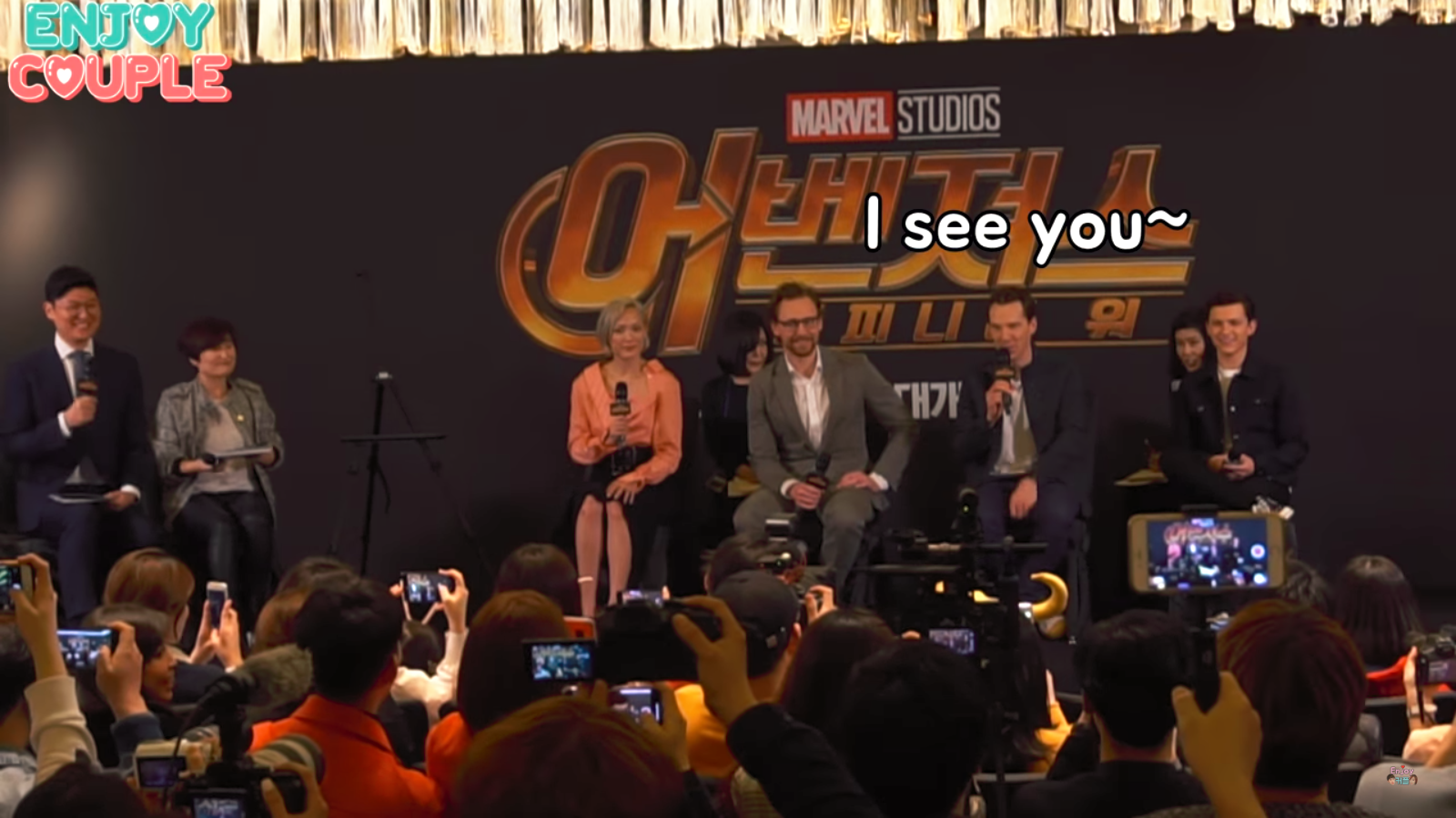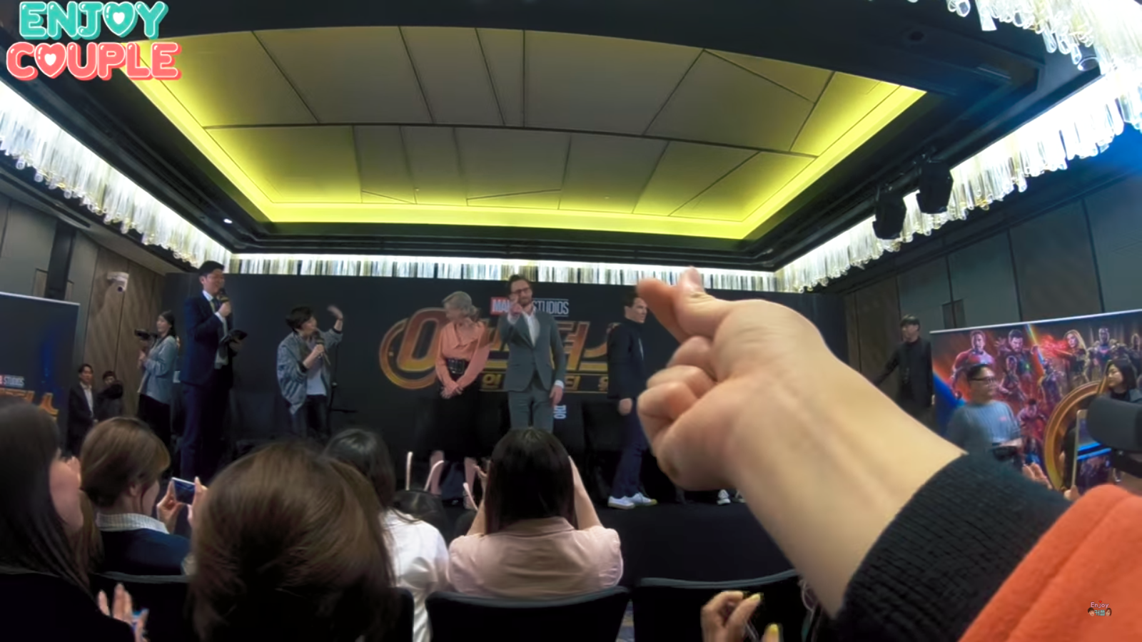 全場合照之後,民秀也對飾演洛基的湯姆希德斯頓比韓國著名的手指愛心,沒想到也被回比,讓民秀瞬間超嗨XD 一場電影演員記者見面會,但情侶兩人都非常滿足啊!真羨慕有個寵女友的男友~