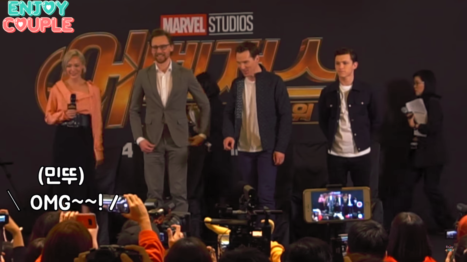 在現場拉拉整個人超級興奮,不但嘴裡狂念「沒想到這麼近」,還說「早知道這麼近我就好好化妝了」;而民秀則是說:「現在相信了吧!」、「我就是知道這麼近所以準備了墨鏡!」當演員現場時,兩人更是興奮,疼愛女友的民秀還在飾演奇異博士的班奈狄克康柏拜區說話時,手一直舉高指著拉拉,班奈狄克康柏拜區看到之後也回應:「I see you!」讓拉拉開心到合不攏嘴~