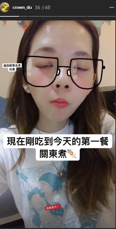 5月3日滴妹在IG的限時動態發布一張自己的趣味照片,寫著「今天剛吃到今天的第一餐關東煮」,只見照片中,滴妹用P圖軟體替自己帶上眼鏡並上了點小腮紅,模樣十分可愛。